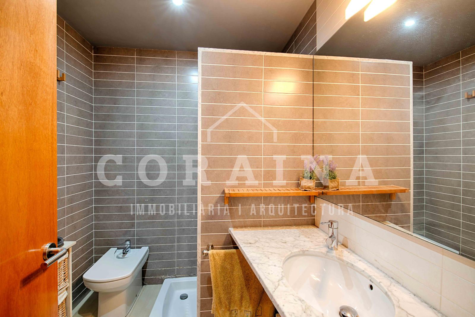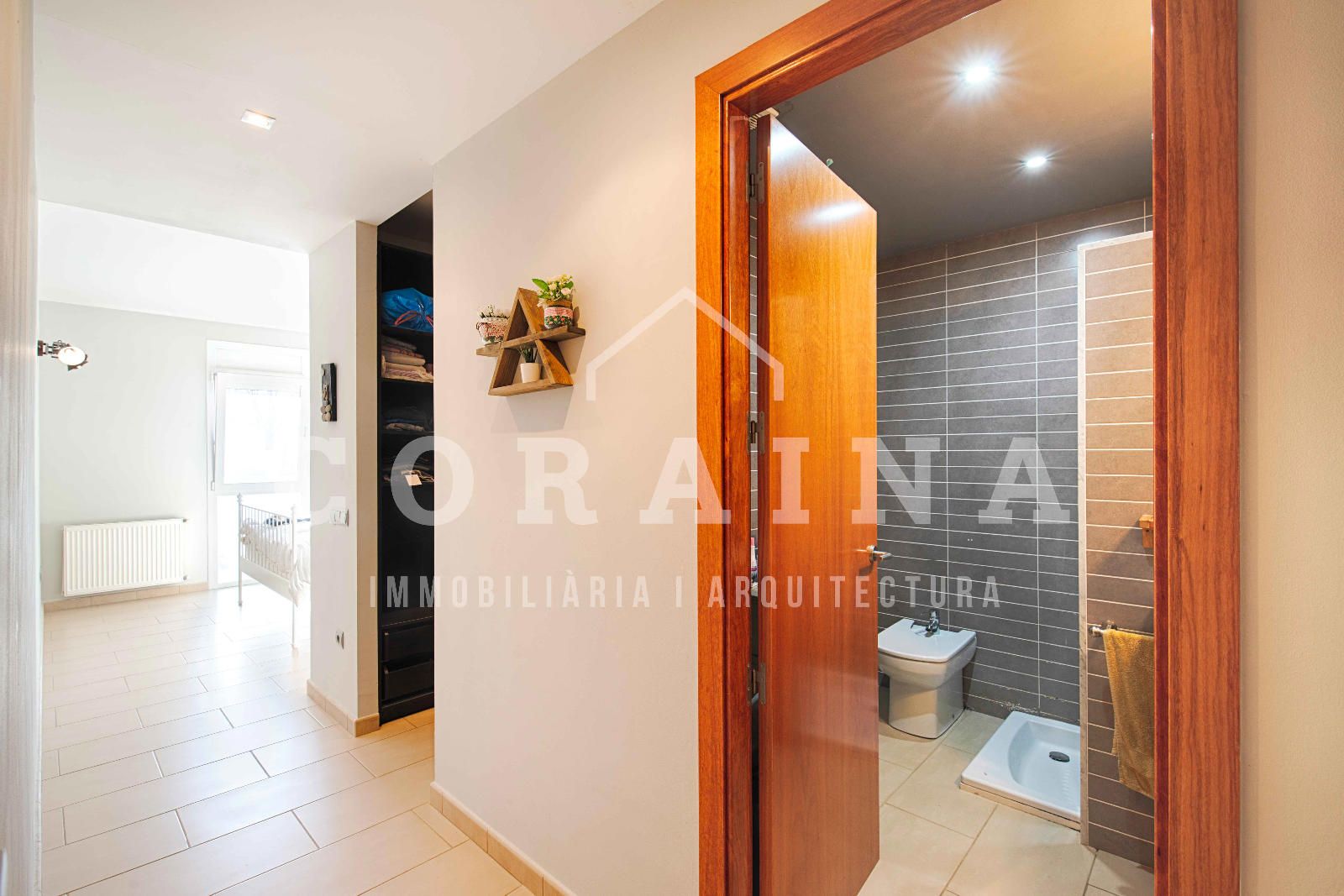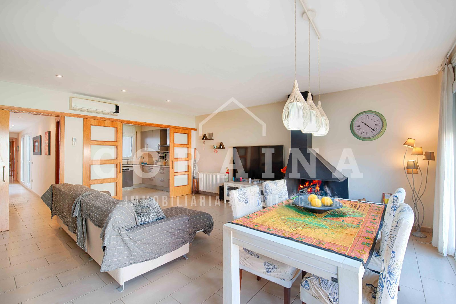 La cocina, práctica y bien aprovechada, se comunica con el salón mediante puertas correderas, permitiendo unir o separar ambos espacios según las necesidades del momento.